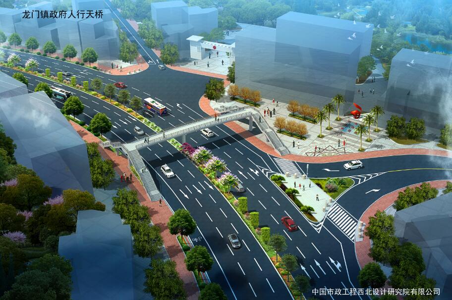 龍門鎮(zhèn)人民政府人行天橋位于羅龍西路龍門鎮(zhèn)人民政府西側(cè)約80米處,采用鋼結(jié)構(gòu)連續(xù)梁,腹板為圓弧形,主梁全長44.8米,寬4.0米。梯道坡度1:2,兩側(cè)長分別為16.9米、15.7米,寬2.8米,總投資約400萬元。