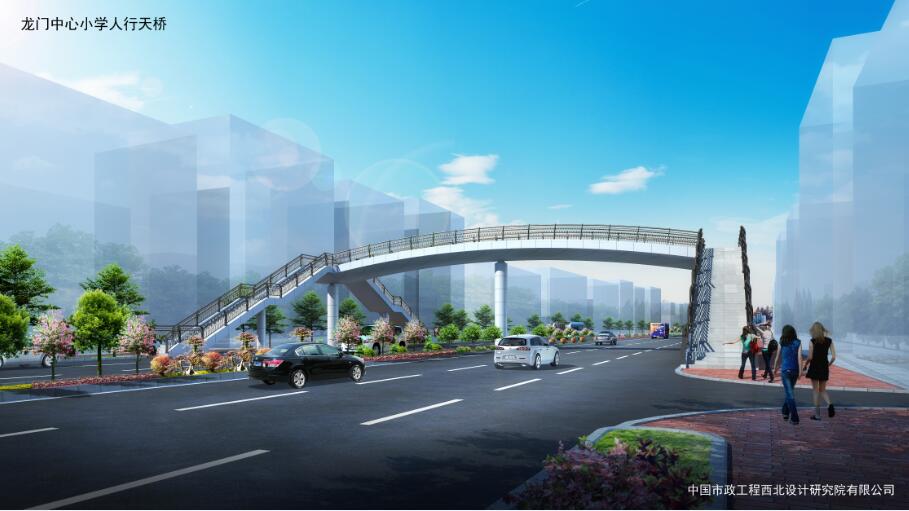 龍門中心小學(xué)人行天橋位于羅龍西路龍門中心小學(xué)西側(cè)約80米,主梁采用鋼箱型連續(xù)梁,腹板為圓弧形,主梁全長33.8米,寬4米。梯道坡度1:2,長16.9米、寬米,中間設(shè)置緩步平臺(tái)。總投資約400萬元。